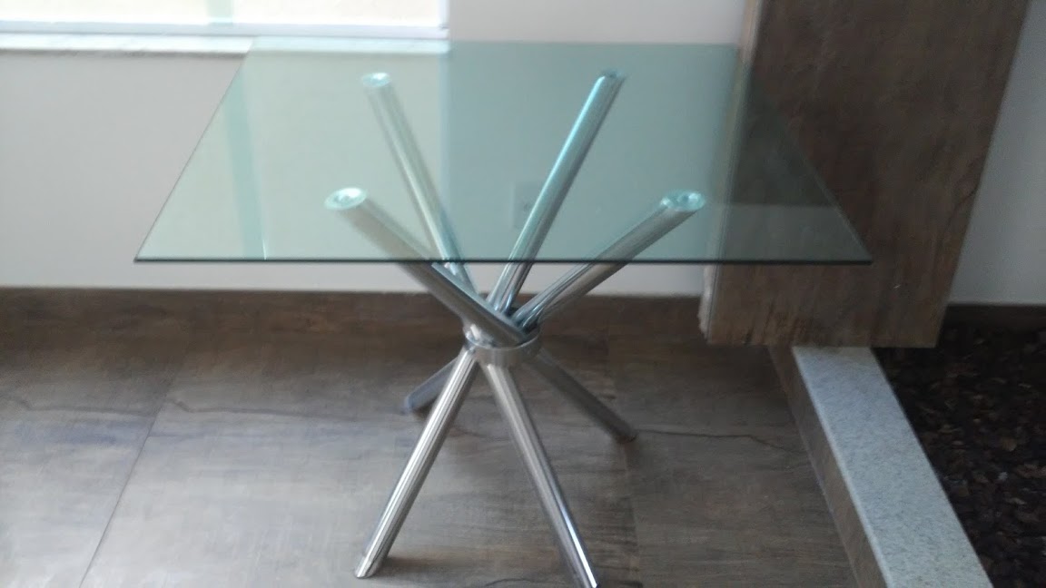 Mesa de Blindex com base en aço inox